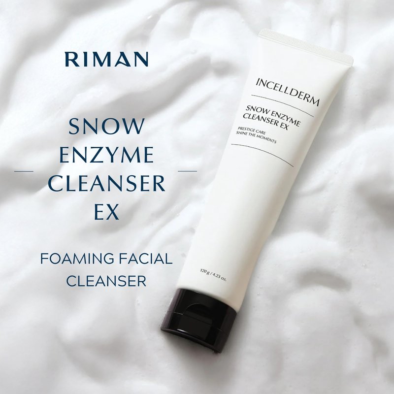 INCELLDERM Riman Snow Enzyme Cleanser EX | 120 g | Gentle Foaming Facial Cleanser for All Skin Types | Hydrating Face Wash with Natural Enzymes | Nourishing Oils | Deep Cleansing and Refreshing