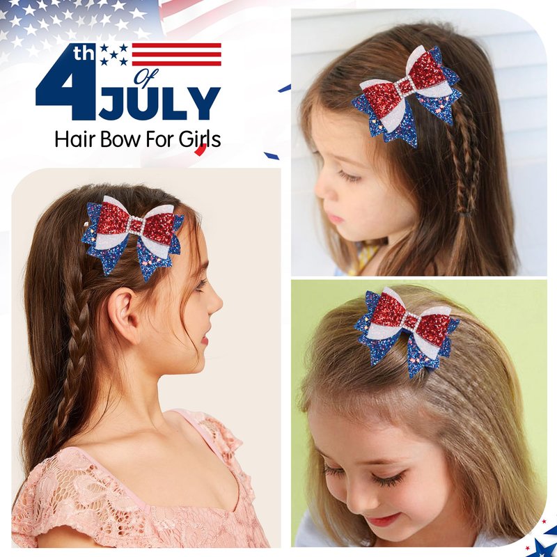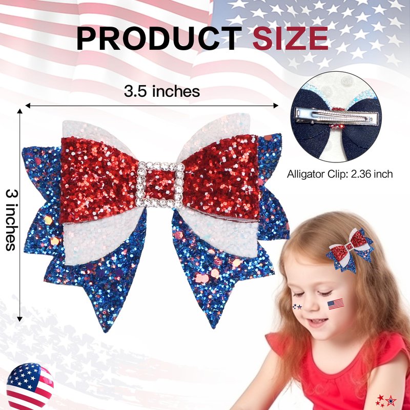 - Versatile Use: Beyond serving as a hair accessory for 4th of July celebrations, these glitter hair bows can also adorn clothes, bags, or serve as a special Independence Day gift for friends and family, enhancing the festive ambiance and personal style.