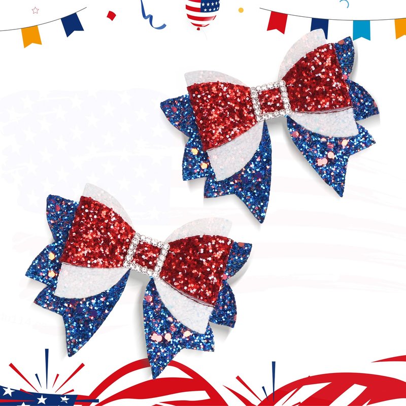 - Patriotic Themed: These hair clips feature a red, white, and blue design adorned with sparkling sequins, embodying the festive spirit of American Independence Day. Perfect for wearing during July 4th celebrations.