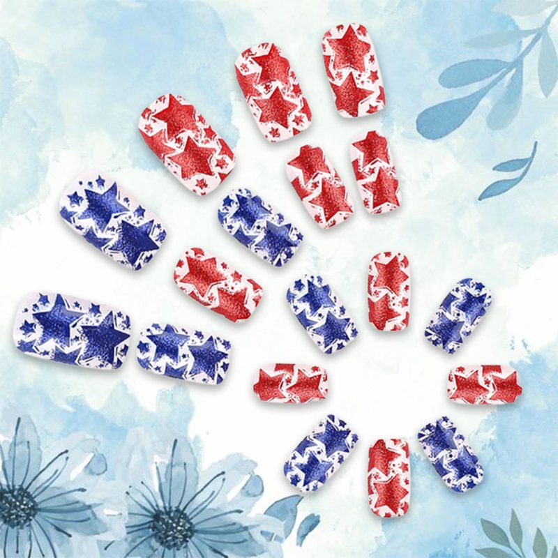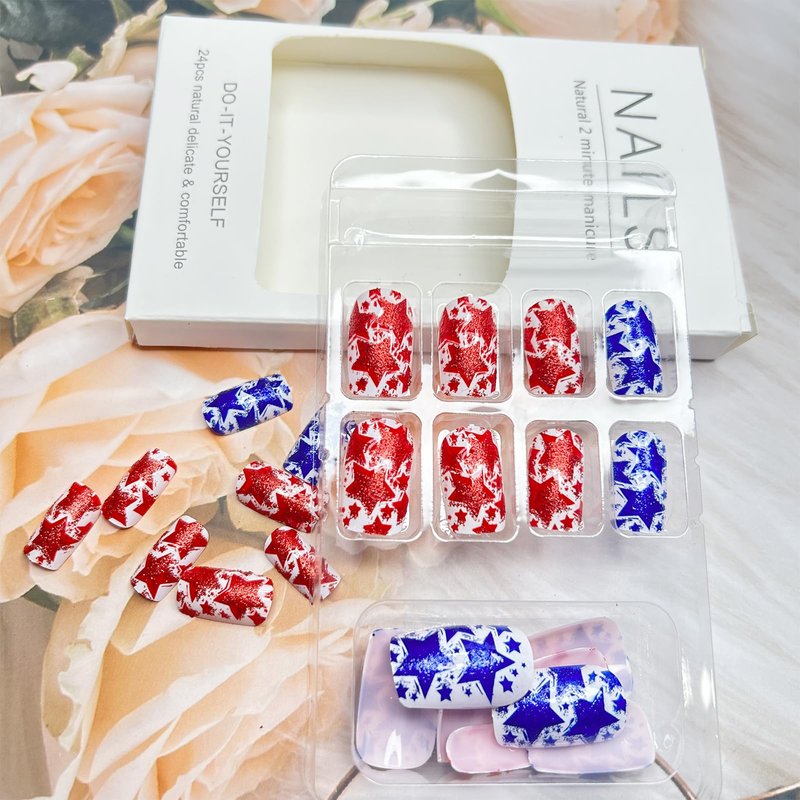 - Unique Fashion Design Nails:4th of July press on nails offer you the most avant-garde colors, shapes, lengths. Combine the hottest trendy elements into false nails. Leading the new nail art trend.