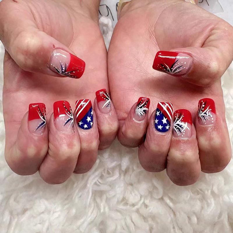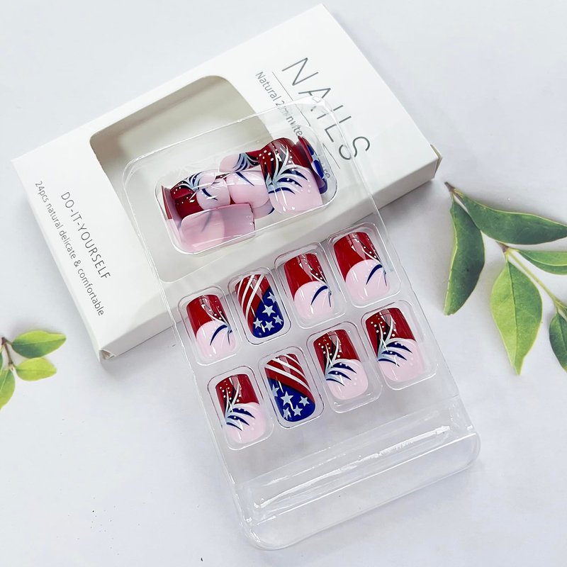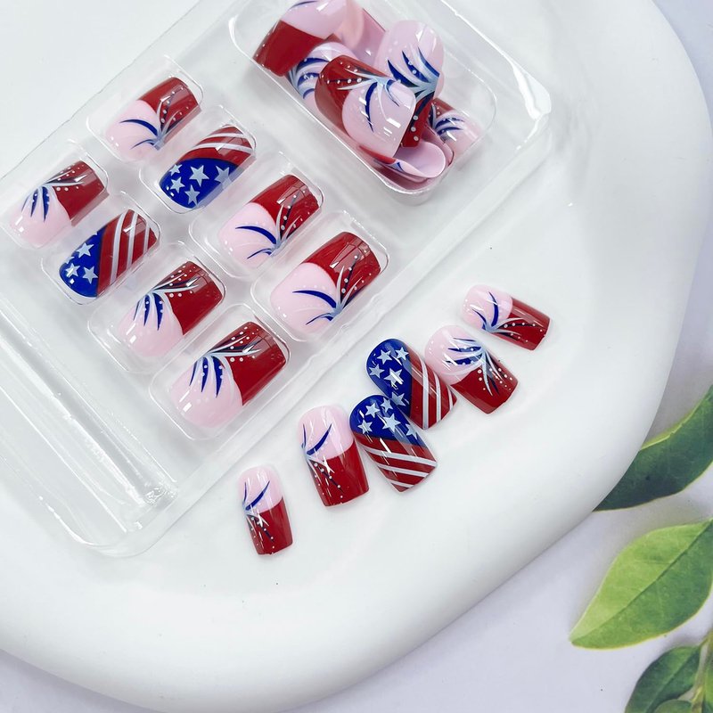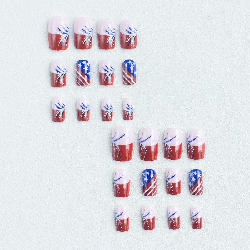 - 【Health and Durable】These 4th of July fake nails with designs are made of healthy ABS material, no irritating smell, higher gloss, not easy to break, It is harmless to your body and nails, and provides you with a comfortable and wonderful experience.