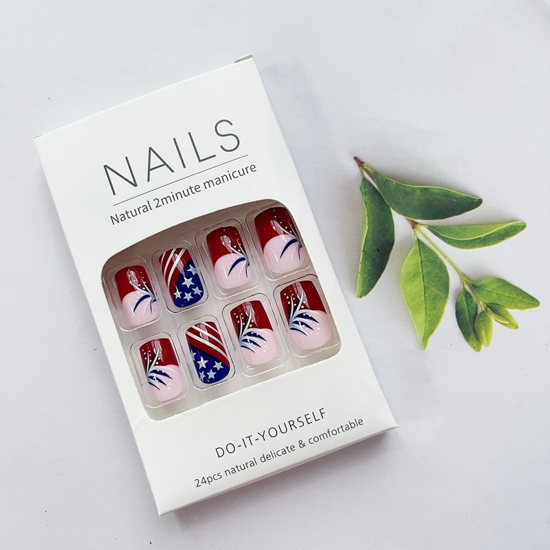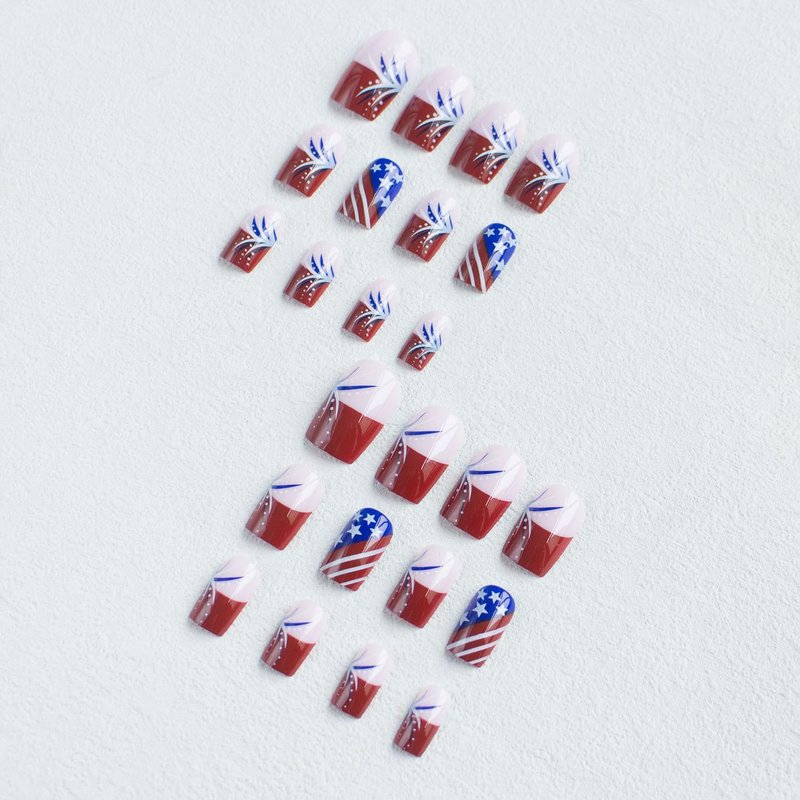 - 【Package Contains】You will get 24 pieces of patriotic press on nails with 12 different sizes, 1pcs nail file, 24pcs double-side glue stickers, 1pcs wooden stick. If you want long-lasting, please use nail glue instead of nail adhesive tabs.