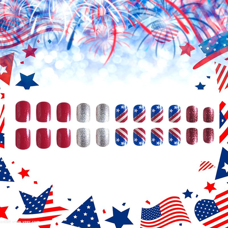 - Easy to Use: Just choose the nail piece that suits you, polish the nail bed, paste the jelly glue we give away, and press usa nails for 30s to get the 4th of July manicure decorations that girls like.