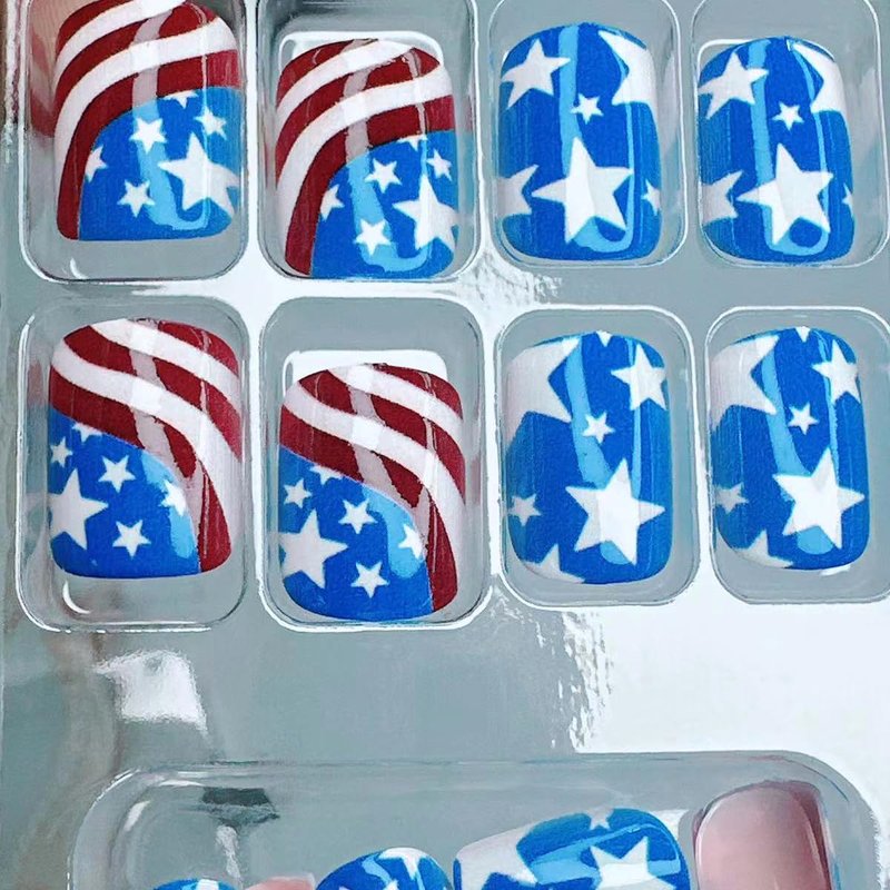 - Easy to Apply: Just choose the American flag nail piece that suits you, polish the nail bed, paste the jelly glue we provide, and press trendy nails for 30s to get the natural manicure that girls like. (Durability of jelly glue is not as good as liquid glue, but it makes fake nails REUSABLE. Please use suitable glue according to different scenes)