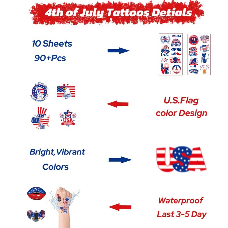 - Versatile designs for every occasion: Our Independence Day Temporary Tattoos come in a pack of 20 sheets, featuring over 120 unique designs. From American flags to Statue of Liberty, our collection has something for everyone. Suitable for arms, shoulders, back, legs, and any other part of your body, these tattoos are perfect for Fourth of July celebrations or any patriotic event.