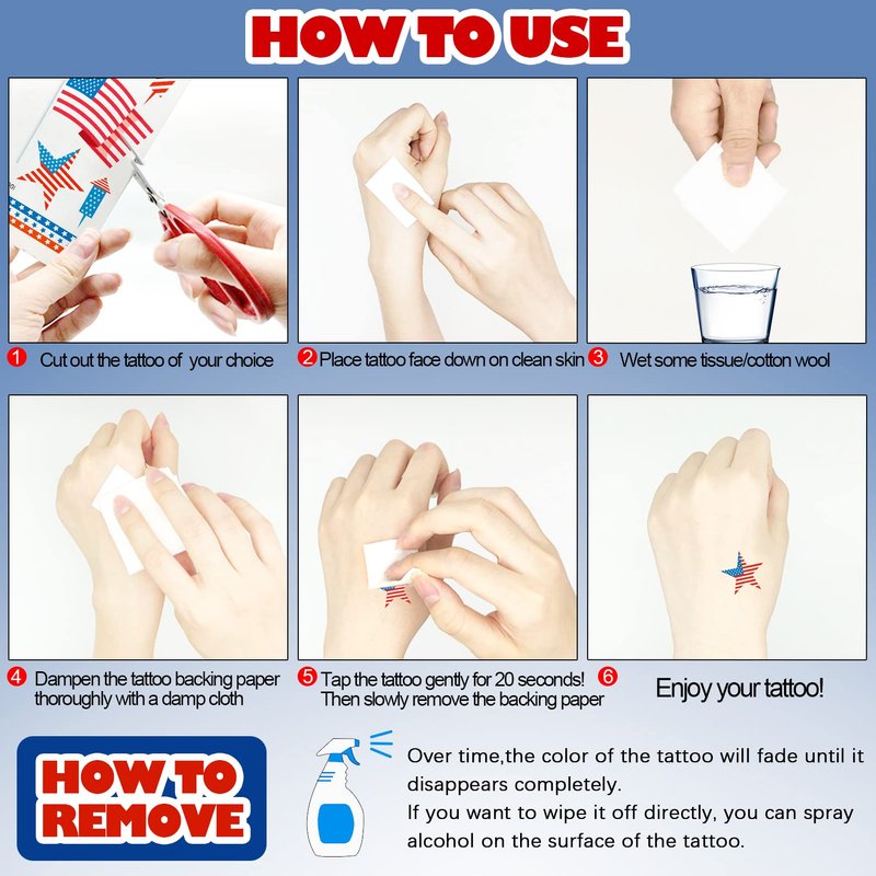 - ☆Long Lasting:Our labor day temporary tattoos will not come off easily and stay 3-5 days or more.