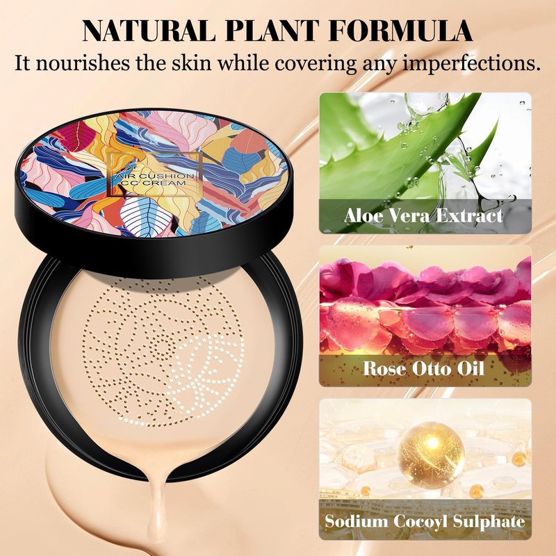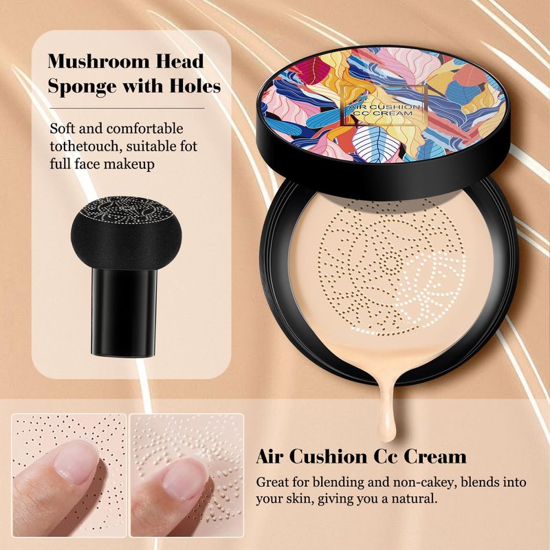 - [Long-lasting Makeup]: Mushroom head air cushion cc cream's coverage lasts up to 18 hours. Provides all-day hydration, keeping your skin feeling soft, supple, and radiant