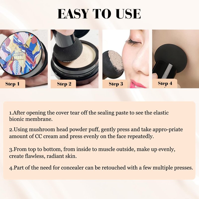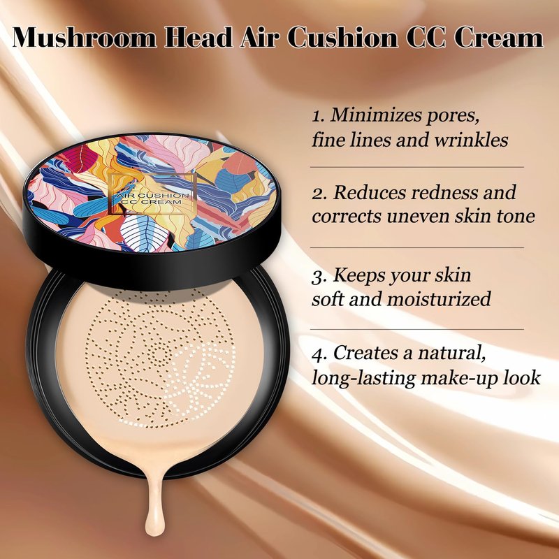 - [Air Cushion BB Cream]: Designed with a mushroom head sponge puff to ensure even application. Our Mushroomhead CC Cream easily conceals wrinkles, blemishes, enlarged pores and acne marks for a natural and flawless look