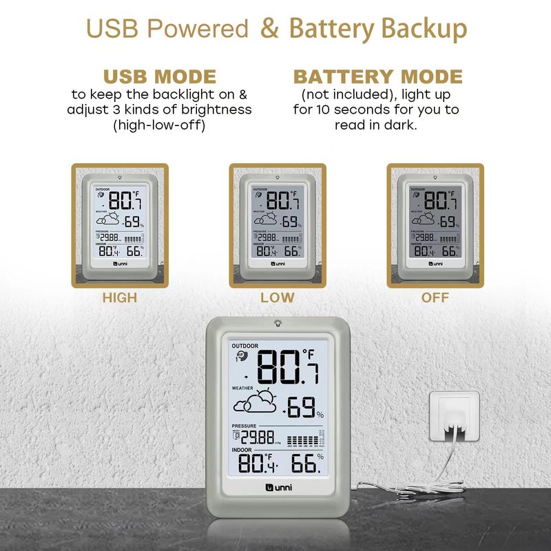 - SPECIAL FEATURES – Stop worrying about the climate! With our wireless hygrometer thermometer gauge, you will be able to know in real time the weather forecast, as well as the indoor and outdoor temperature and humidity. You can also see on the display of Barometric history chart, Barometer reading, Barometric history data.