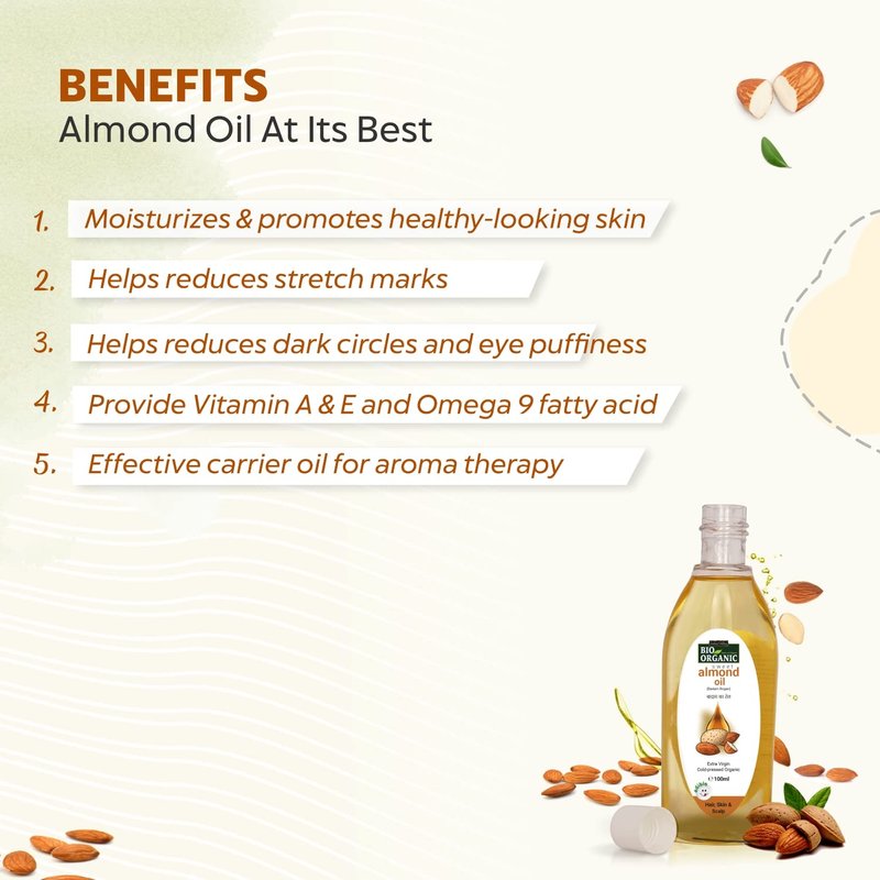 INDUS VALLEY Bio Organic Roghan Badam Sweet Almond Oil 100% Organic And Cold-Pressed For Hair & Skin (No Mineral Oil & Sulphate) Safe For Babies (100 Ml (Pack Of 1) Yellow)