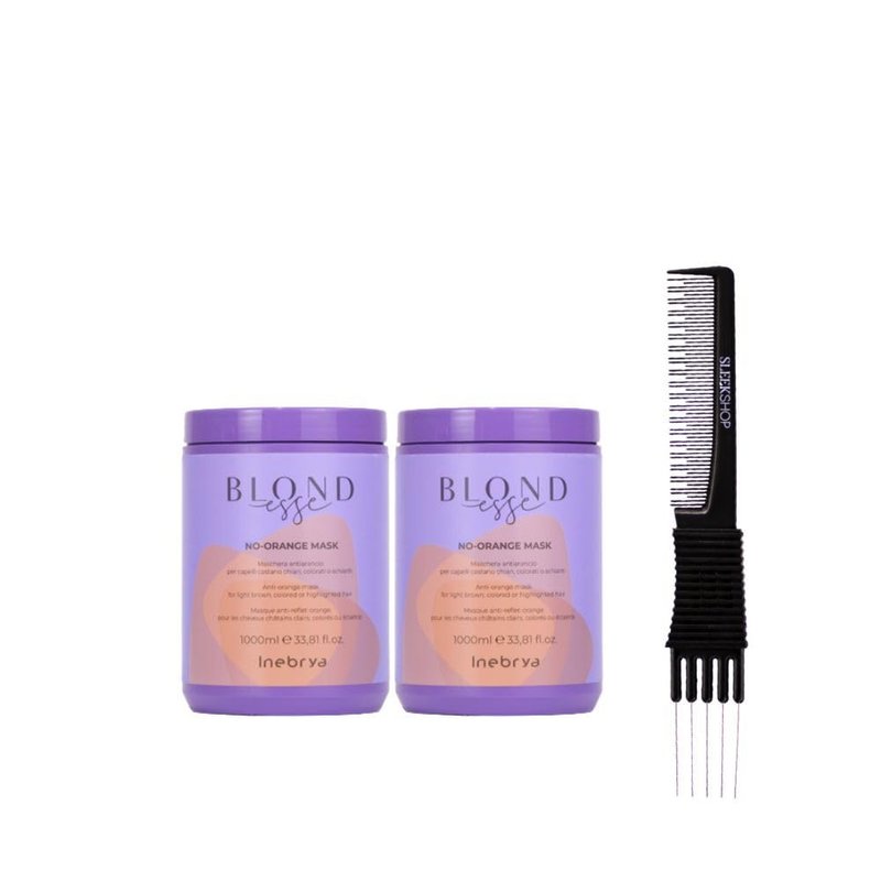 Inebrya Blondesse No-Orange Mask (33.8 oz) with Teasing Comb Pack of 2