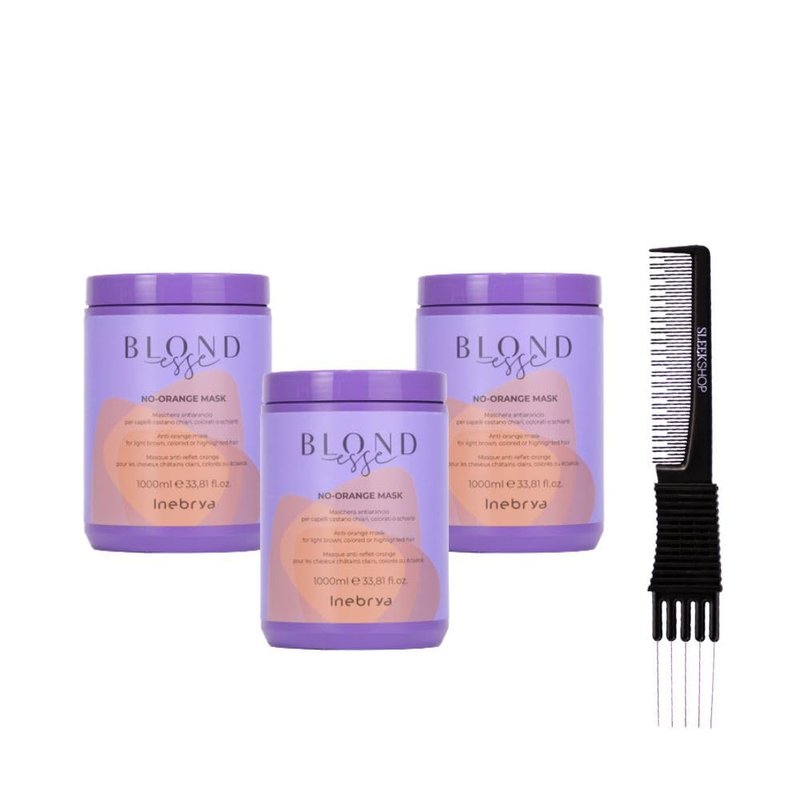 Inebrya Blondesse No-Orange Mask (33.8 oz) with Teasing Comb Pack of 3
