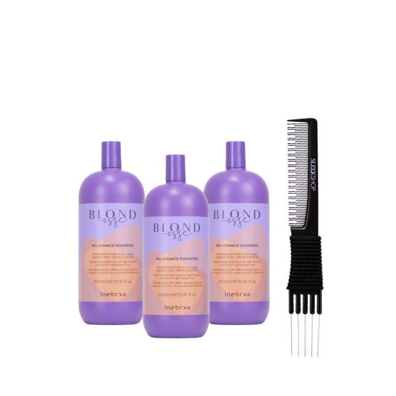 Inebrya Blondesse No-Orange Shampoo (33.8 oz) with Teasing Comb Pack of 3