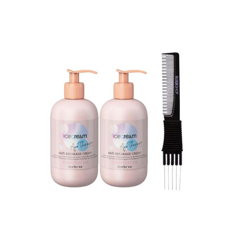 Inebrya Ice Cream Age Therapy Anti Breakage Cream (5.07 oz) with Teasing Comb Pack of 2