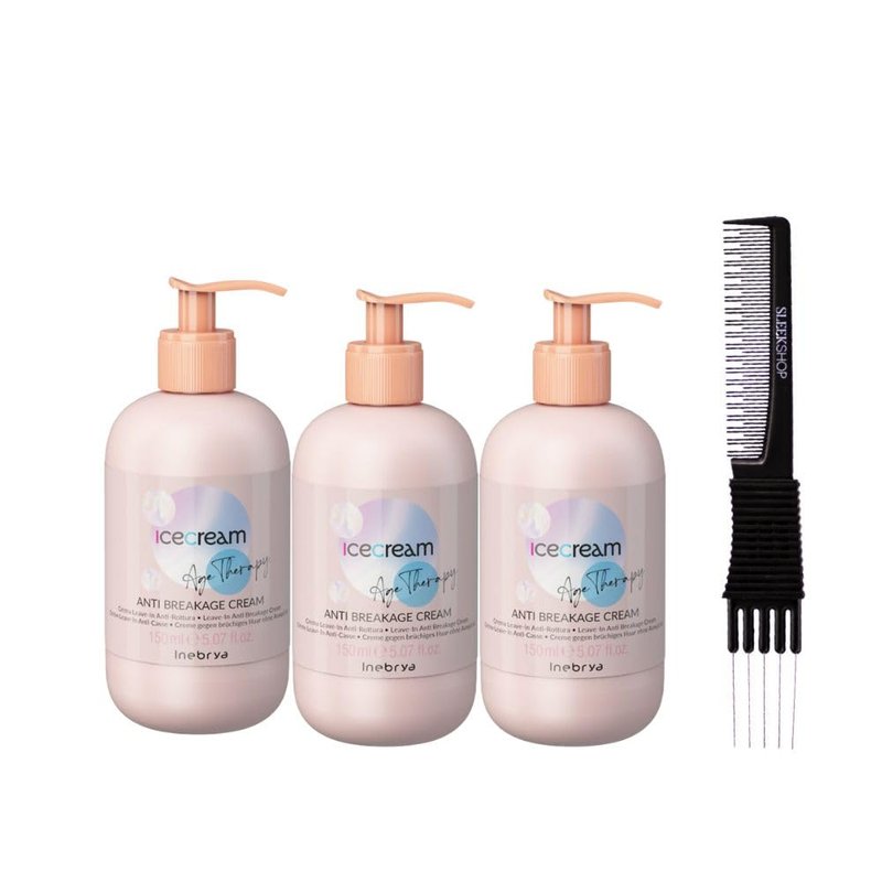 Inebrya Ice Cream Age Therapy Anti Breakage Cream (5.07 oz) with Teasing Comb Pack of 3