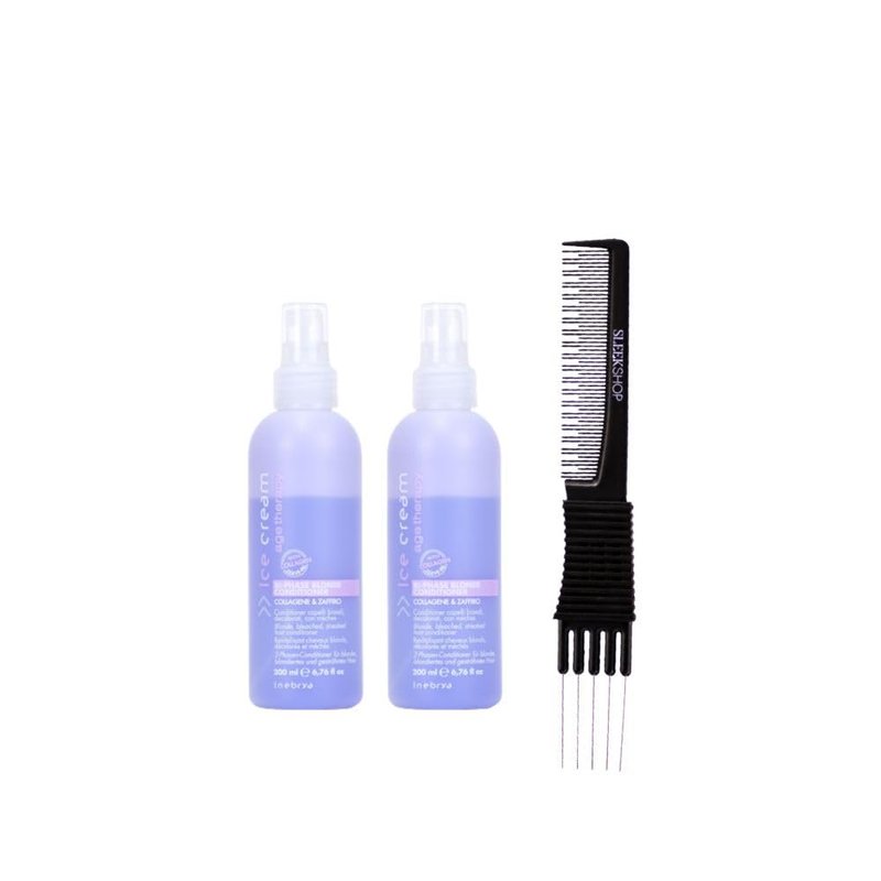 Inebrya Ice Cream Age-Therapy Bi-Phase Blonde Conditioner (6.76 oz) with Teasing Comb Pack of 2