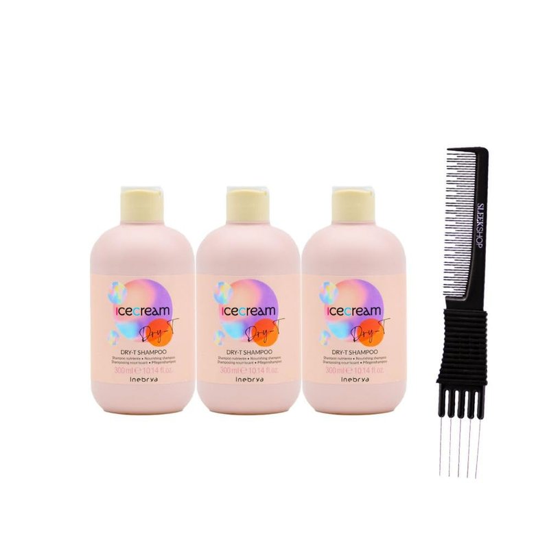 Inebrya Ice Cream Dry-T Shampoo (10.1 oz) with Teasing Comb Pack of 3