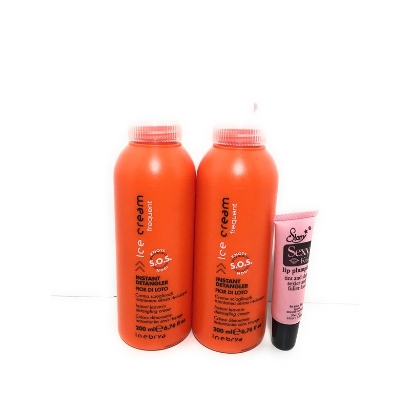 Inebrya Ice Cream Instant Detangler Fior Di Loto Instant Leave-in Detangling Cream 6.76 Oz"Free Starry Lipgloss 10 Ml" (Pack of 2)