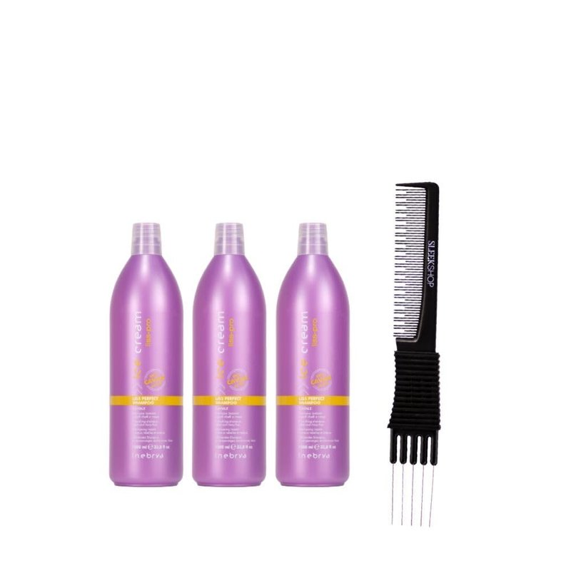 Inebrya Ice Cream Liss-Pro Shampoo (33.8 oz) with Teasing Comb Pack of 3