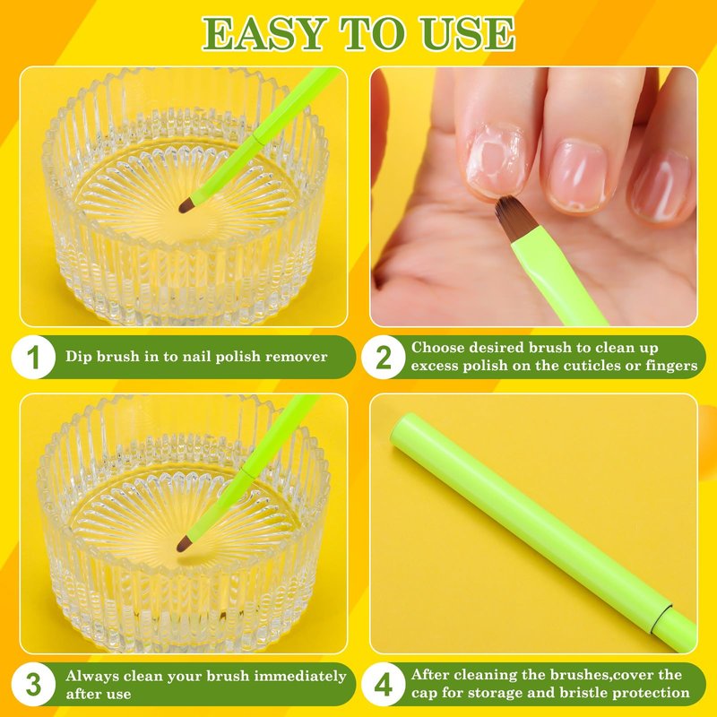 - USAGE TIPS: Simply dip the brush into nail polish remover and delicately clean up any misplaced polish around your cuticles. The soft bristles effortlessly remove polish, leaving a flawless finish. Remember to clean the brush after each use to maintain optimal performance and longevity