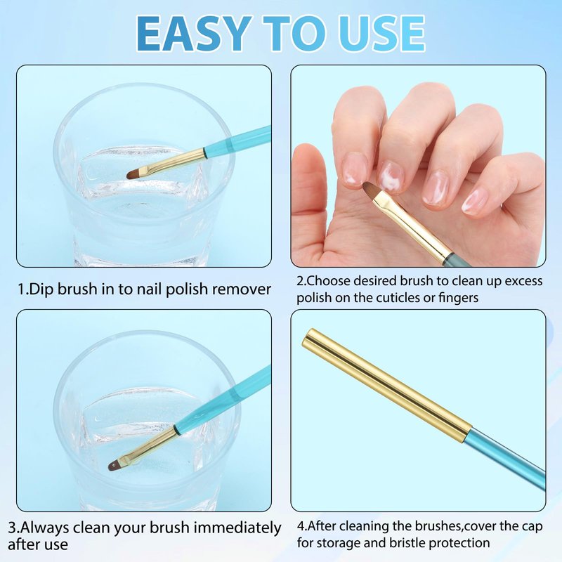 - Cap Included & Wide Application: Each nail art clean-up brush is equipped with a cap for storage and bristle protection. Elevate your nail art session by adding this luxurious brush to your nail art arsenal. Ideal for nail salons or home DIY nail art enthusiasts, it's also a perfect gift for your mom, wife, friends, sisters, and more