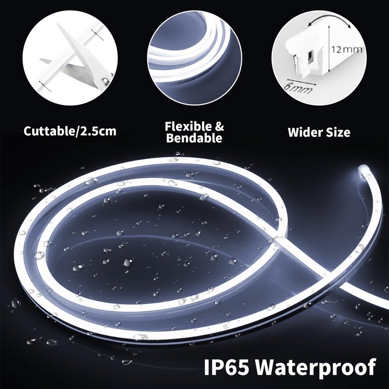 - Flexible & Waterproof: The neon LED strip lights are more flexible and IP65 waterproof, suitable for indoor and outdoor usage. Easily bendable for custom shapes.