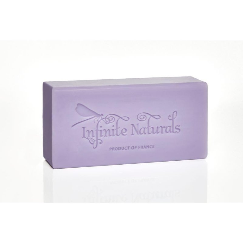 - Infinite Naturals gentle body soap contains nourishing shea extract to help cleanse and moisturize your skin. Soothing and Calming. Apply evenly over your skin, lather and enjoy the delightful enticing scent. 5.3 oz / 150g Made in France