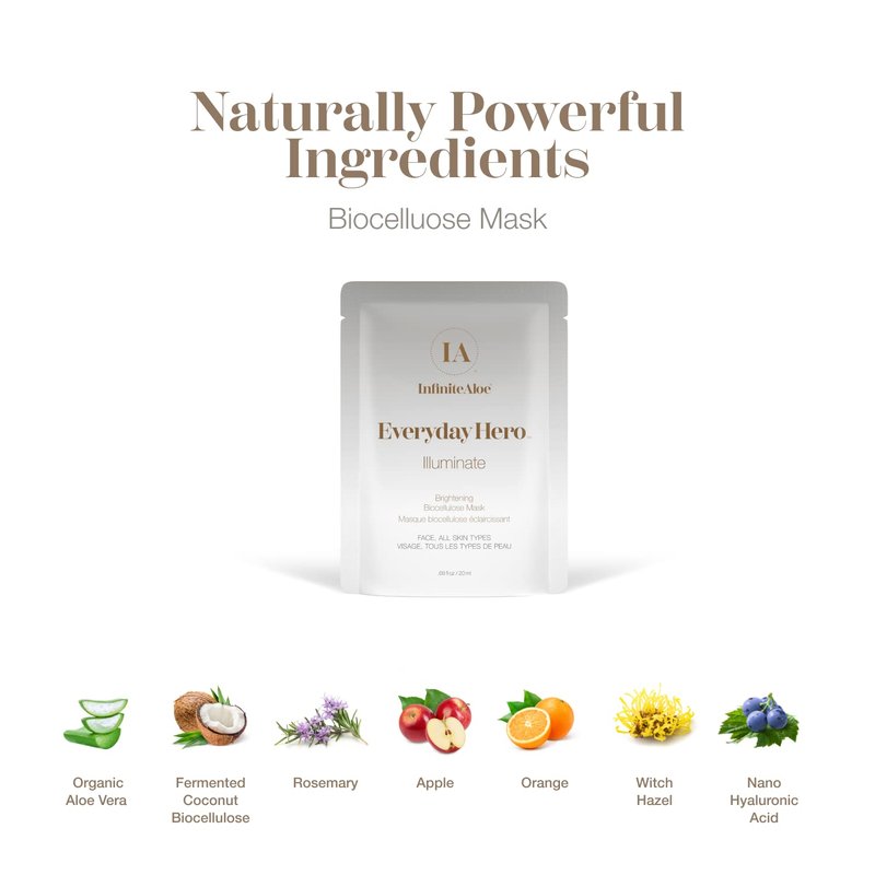 InfiniteAloe Biocellulose Fiber Face Mask, Everyday Hero Illuminate Brightening Face Mask
