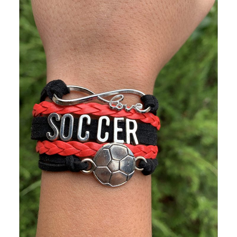 Infinity Collection Soccer Gifts, Soccer Bracelet, Soccer Jewelry, Adjustable Soccer Charm Bracelet- Perfect Soccer Gifts (Red/Black)