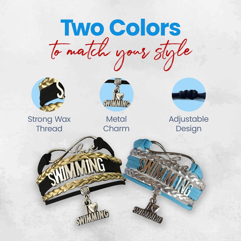 Infinity Collection Swim Bracelet- Girls Swimming Charm Bracelet- Love Swim Jewelry - Gift For Swimmers, Swim Team