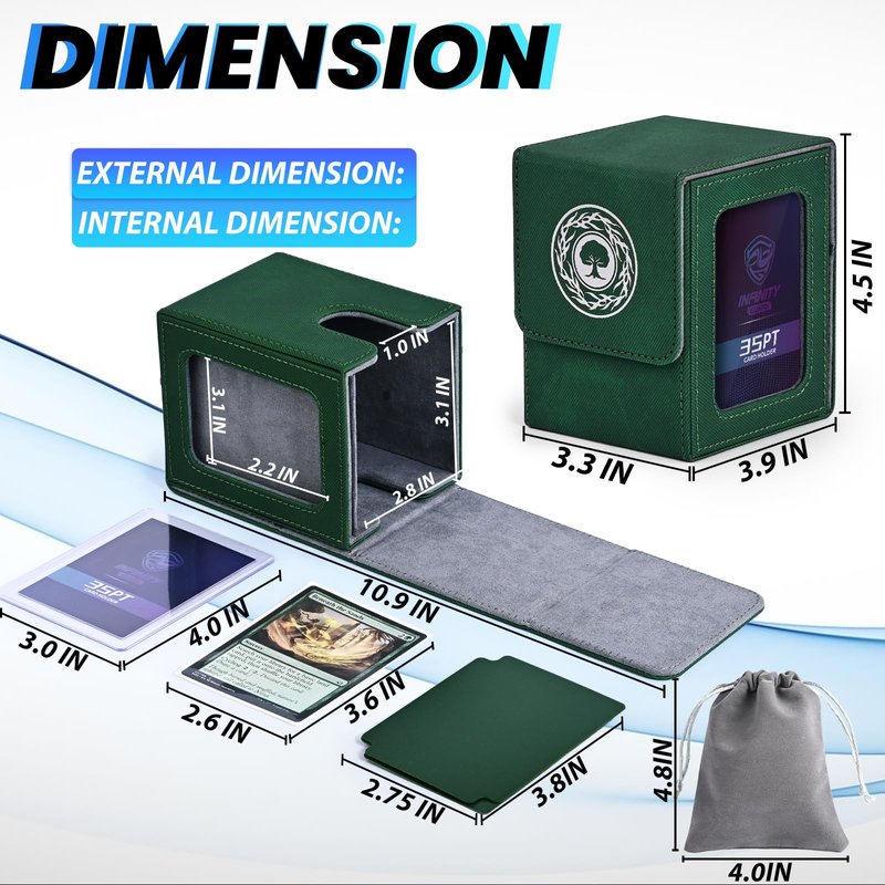 - Bonus Inclusions : Trading card storage box includes 2 card dividers help you classify your cards more effectively, 1 drawstring bag for you to hold dice, and 1 35PT toploader,ensuring your gaming essentials are neatly organized