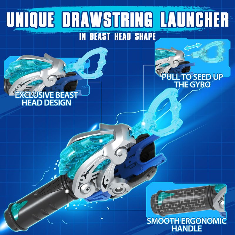 - EXQUISIVE DETAILS: The shape of the launcher is designed into a tiger's head symbolizing power. Meanwhile, the gyro not only owns the attracting appearance but also owns the feature of durability and balance due to the composition of exclusive monster icon, durable metal ring and POM bearings. All the exquisive details make the set more intersting and attracting.