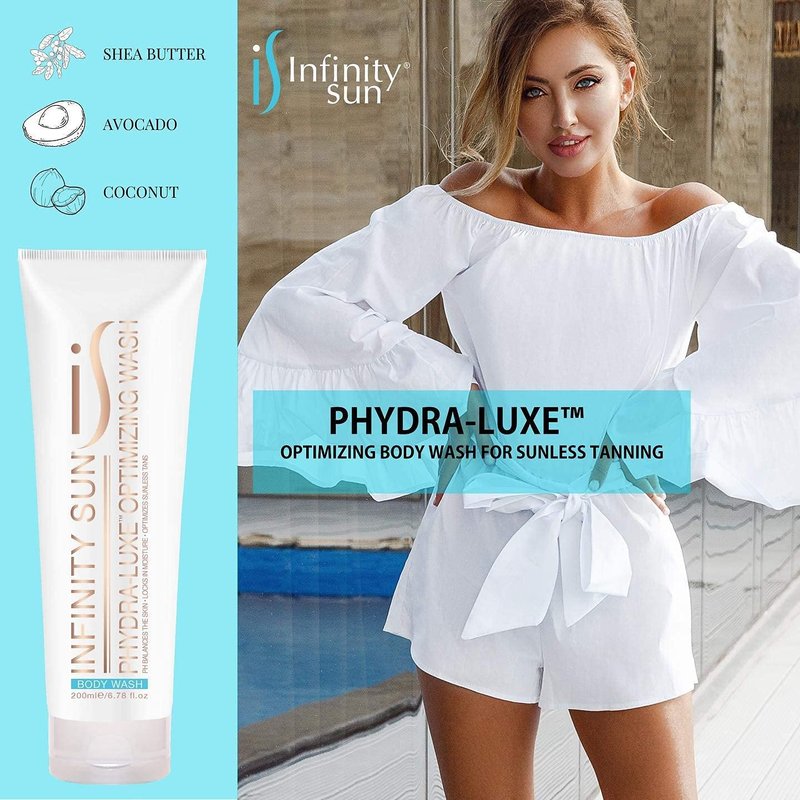 Infinity Sun PHdra-Luxe Sunless Tan Optimizing Body Wash | PhBalanced, Enriched with Avocado, Coconut, and Shea Butter | After Sunless Tanning, 6.78 Oz