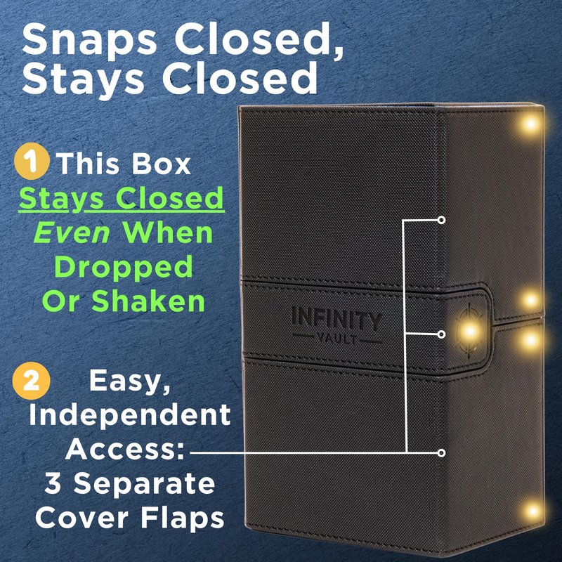 - Strong Magnetic Snap Closure - Keeps cards secure, even when shaken, unlike other deck boxes which might flip open from being tossed or dropped.