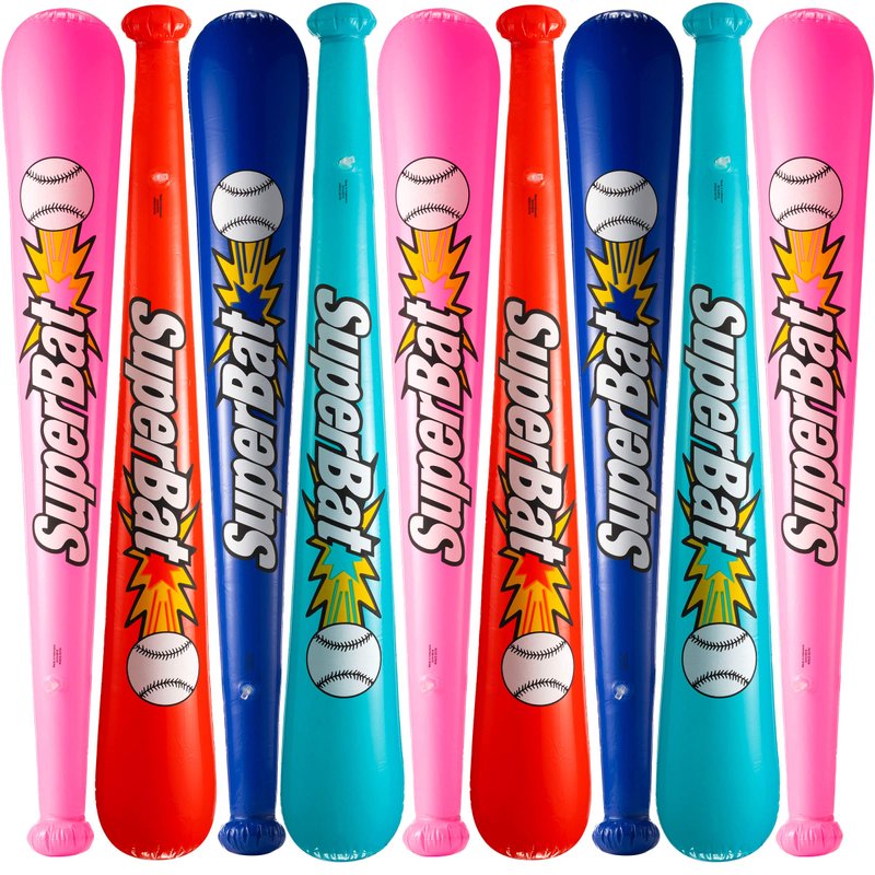 Inflatable baseball bats are made from high quality nice and thick vinyl material and features bright vibrant colors that kids enjoy. They stay inflated and your kids will love them. Recommended for ages 3+