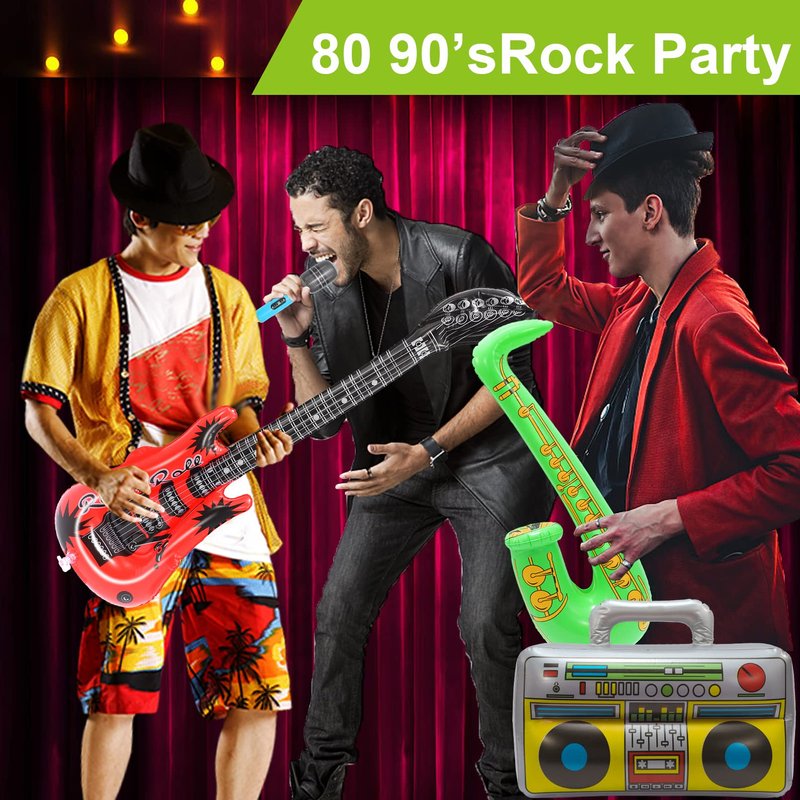 - 🎼Wide Application: The inflatable instruments are a great decoration for any party, such as rock party supplies, 80's 90's party decorations, birthday party, Christmas party, which can add more happy rock and roll atmosphere to your party. It can also be used as photo shoot props, concert stage props, classroom party favors, etc.