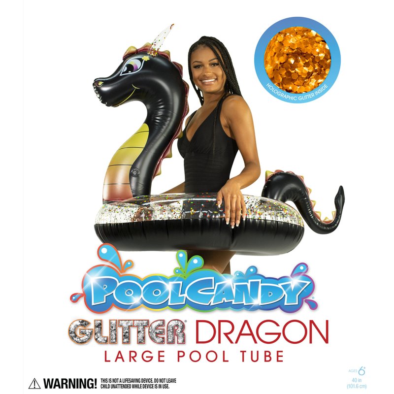 Inflatable Sea Dragon Pool Tube 40 Inch with Glitter Fun Swim Ring by PoolCandy for Kids & Adults.