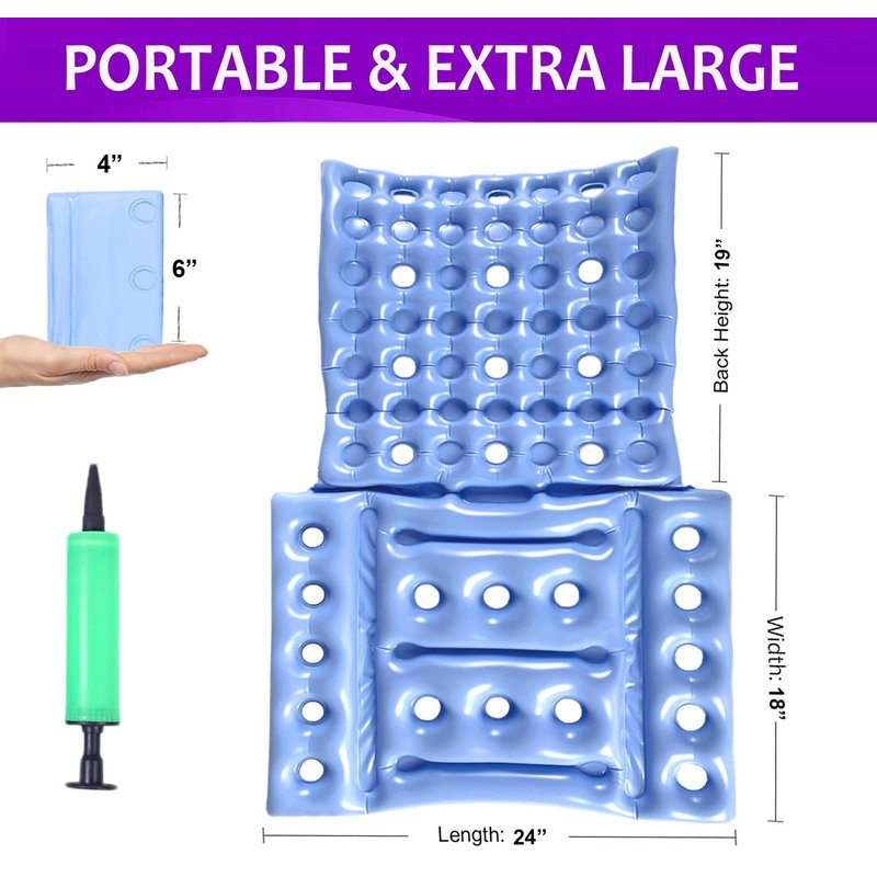 - 【Portable and Compact】When deflated, the seat pad can be easily fold and put into a purse, briefcase or travel bag. Compact and lightweight, the inflatable seat cushion is extremely portable.