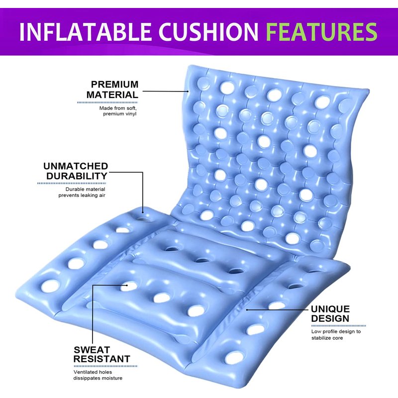 - 【High-quality PVC Material】The inflatable seat cushion is made of high quality PVC which makes it easy to clean, waterproof and durable. Breathable and comfortable in summer, it is not easy to sweat, and it is not easy to harden in winter.