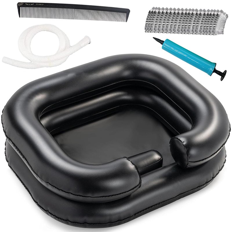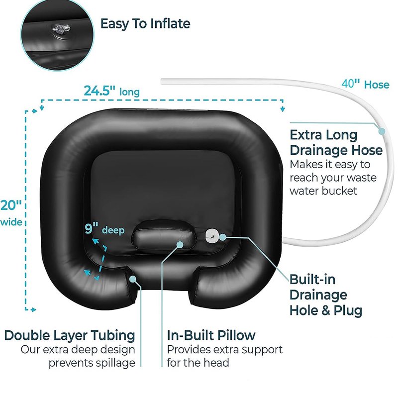 Inflatable Shampoo Basin - Portable Hair Washing Bowl/Tub for Bedridden, Disabled,Injured, Elderly, Hair Washtub for Dreadlocks and at Home Sink Washing (Black)