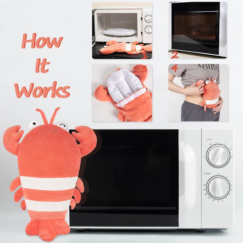 - 【Lobster Microwave Heating Pad 】Different from other heating pads, this lobster heating pad has no cords, saving you from getting tangled in wires when you want to rest. Simply remove the insert from the plush lobster and microwave for 90 seconds, to provide instant relief to your lower belly and back at that time of the month.