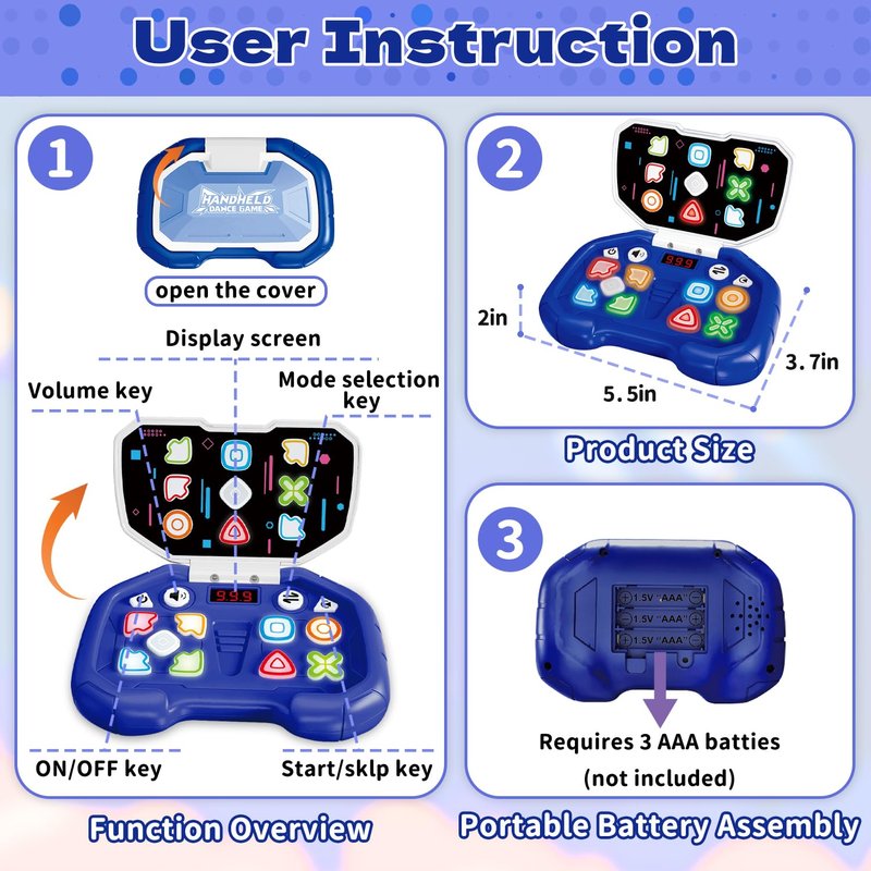 - 【Fast Push Machine】:The new Space Capsule Flip-Top Handheld Dance Game Machine features an LED screen displaying 999 levels, immersing players in educational challenges. This quick push electronic game enhances children’s attention, manual skills, and hand-eye coordination while fostering positive thinking through engaging gameplay. The vibrant lights and dynamic sound effects create a stimulating environment that promotes sensory development in a fun way.