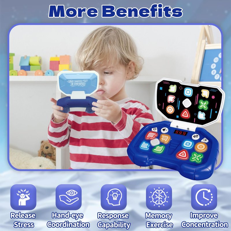Infowush Quick Push Game Light Up Fidget Toys for Kids, 4 Modes LED Screen Handheld Dance Game Machine, Pop Game Controller Electric Popper for Kids Ages 3-12, Xmas Birthday Gifts for Boys Girls Blue