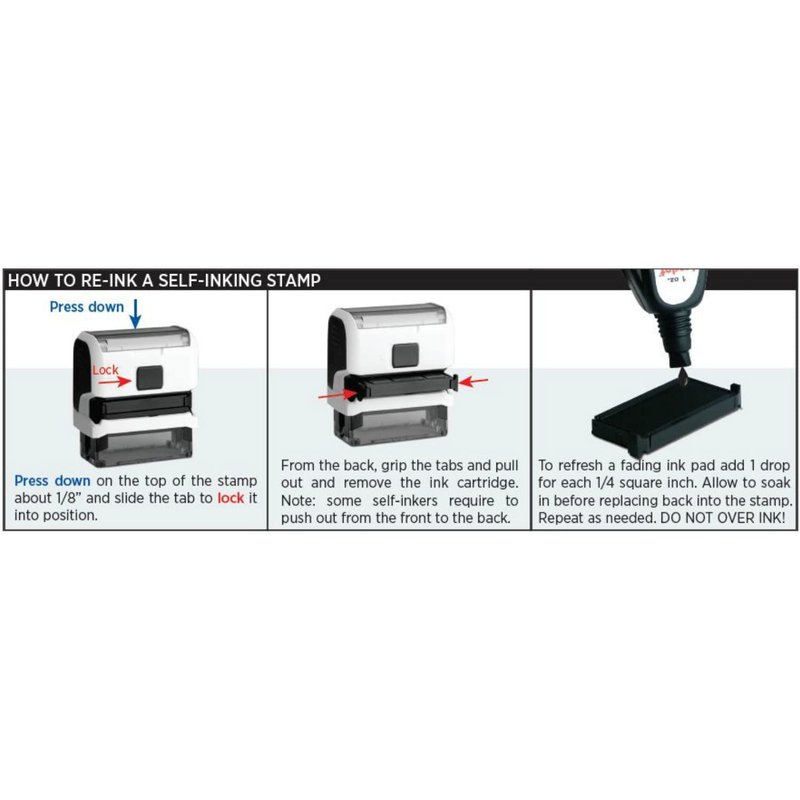 - Personalize your self-inking rubber stamper up to 5 lines, 45 characters per line