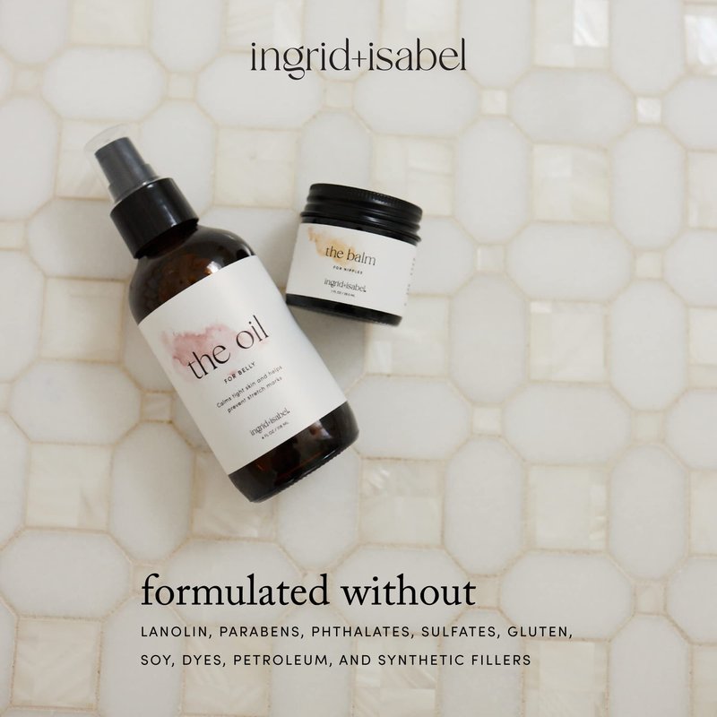 Ingrid + Isabel, The Oil, Organic Belly & Body Oil, Prevents Stretch Marks & Scars, Maternity & Pregnancy Skincare, 4 Fl Oz