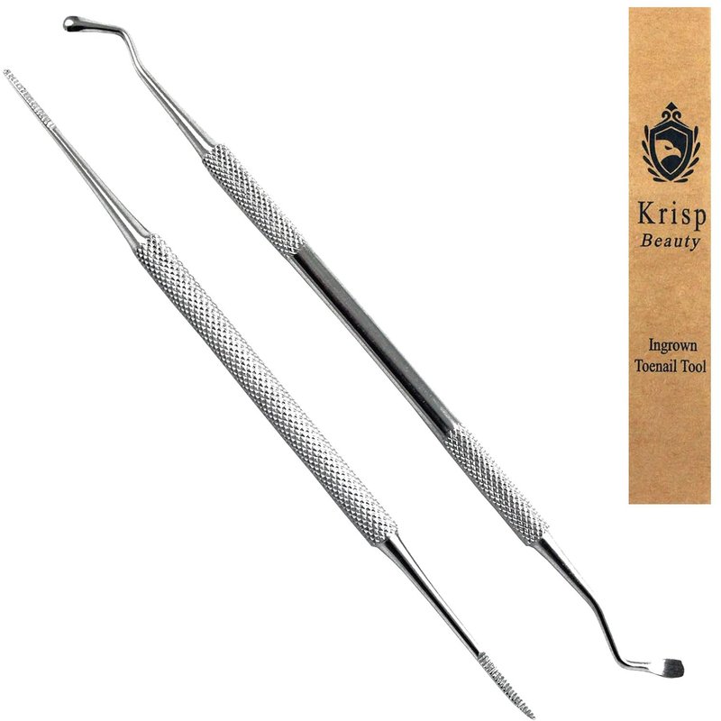 Ingrown Toenail Tools - Sharp Edge Spoon Shaped Double Ended Toenail Lifter & Nail File Cleaner Trimmer Surgical Medical Grade Stainless Steel Manicure Pedicure Nail Care Tool (2 Pc Set) by Krisp