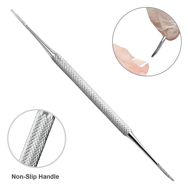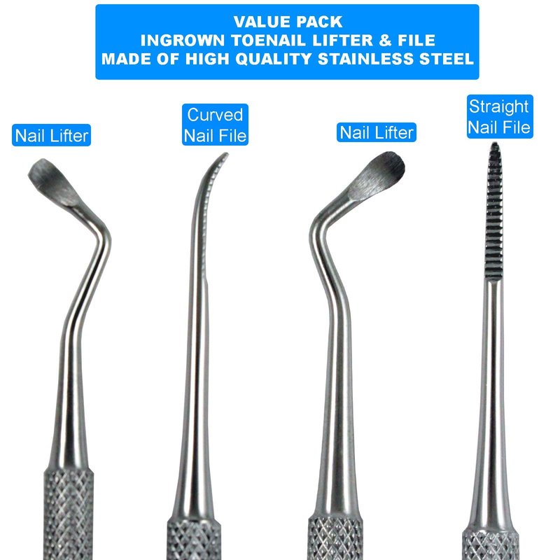 - ✔Double Ended Nail File & Ingrown Toenail Lifter - Especially designed dual ends part away from the skin. Not only a cuticle pusher, also an amazing nail cleaner, nails gel polish remover. Double curved ends are mirrors for both left and right foot. With little spoons on it curved end’s that make it gets under even the closest fingernails to grab even the smallest bits of debris.