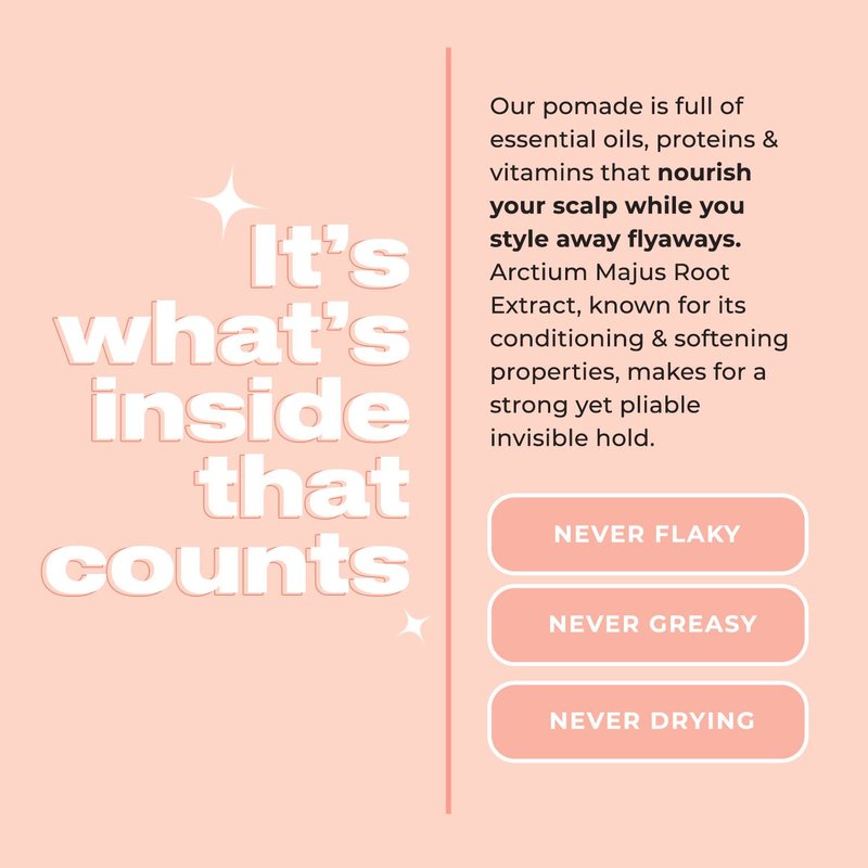 - Multi-purpose pomade: Our pomade works well to slick down frizz & flyaways to create sleek styles, add texture to hair, and thicken hair to create stronger bases before applying ponytails.
