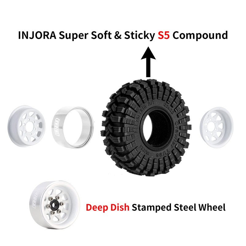 - 62*22mm 1.0" Crawler Tires,made in the Super Soft & Sticky INJORA S5 Compound.