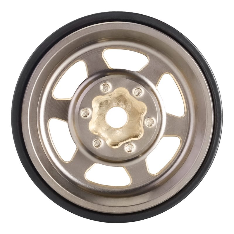 INJORA 1.0 Plus Brass Beadlock Wheel Rims 43g/pcs 6-Spoke Rims for TRX4M SCX24 FCX24 1/24 1/18 RC Crawler,4PCS(Grey)